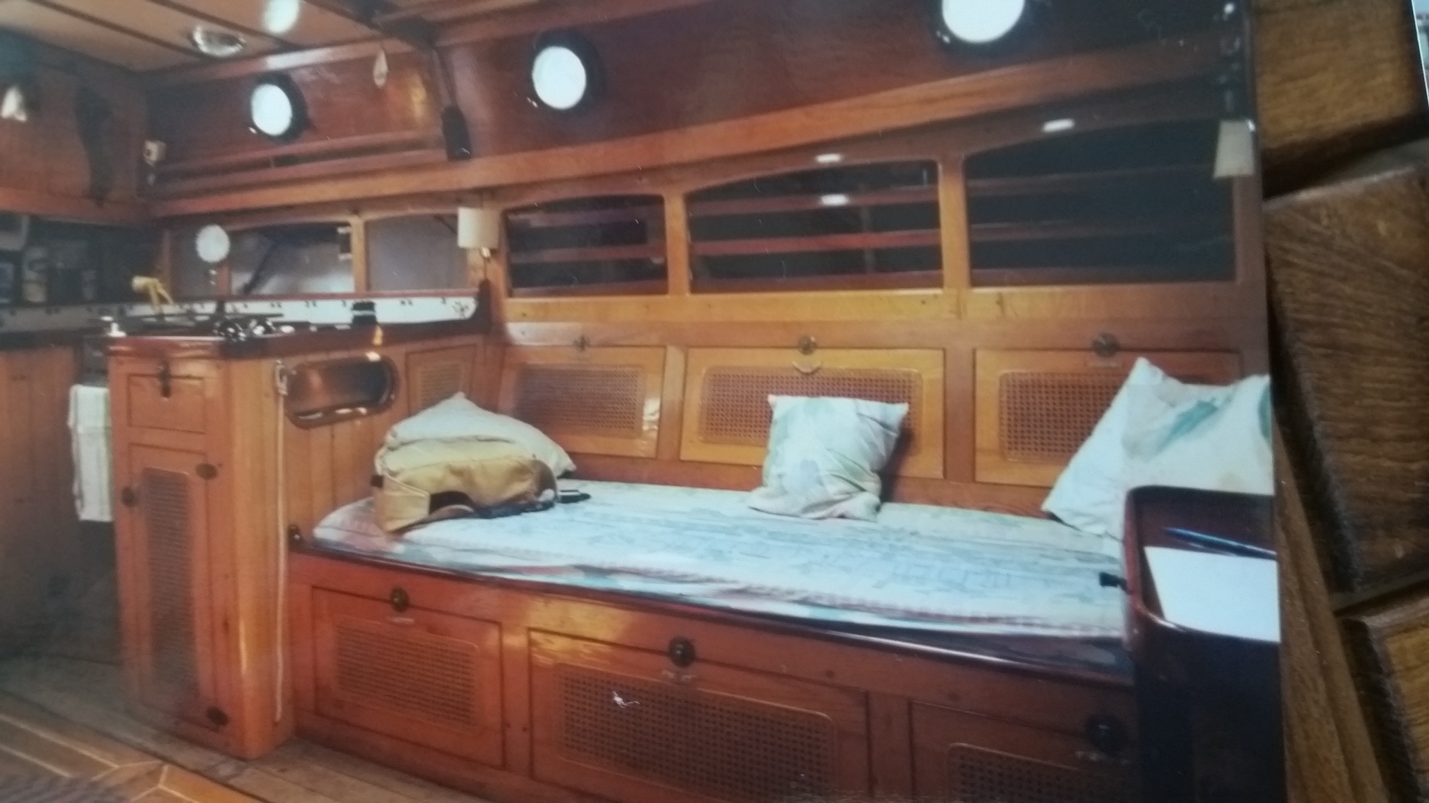 An obviously lovingly built custom interior. Looking at the port side of the main cabin. |