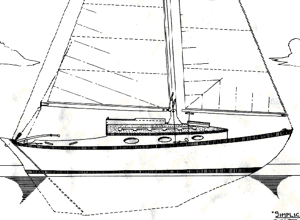 This is a type of coastal cruiser we will revisit soon in a counter stern version with slightly reshaped sections. A number of years ago I approached a magazine editor about doing a "how to build" series on one of my offshore designs. The editor suggested we might go for a concept with "simpler" round bilged construction in a choice of methods. Although I have always found that you have to be very careful in thinking you are simplifying construction, I took this idea and some others of the editors and produced Simplicity. She was intended to be a simple classic family cruising sloop. Since she was supposed to be amateur buildable I did a very large number of drawings for her and a number of illustrations of her construction.